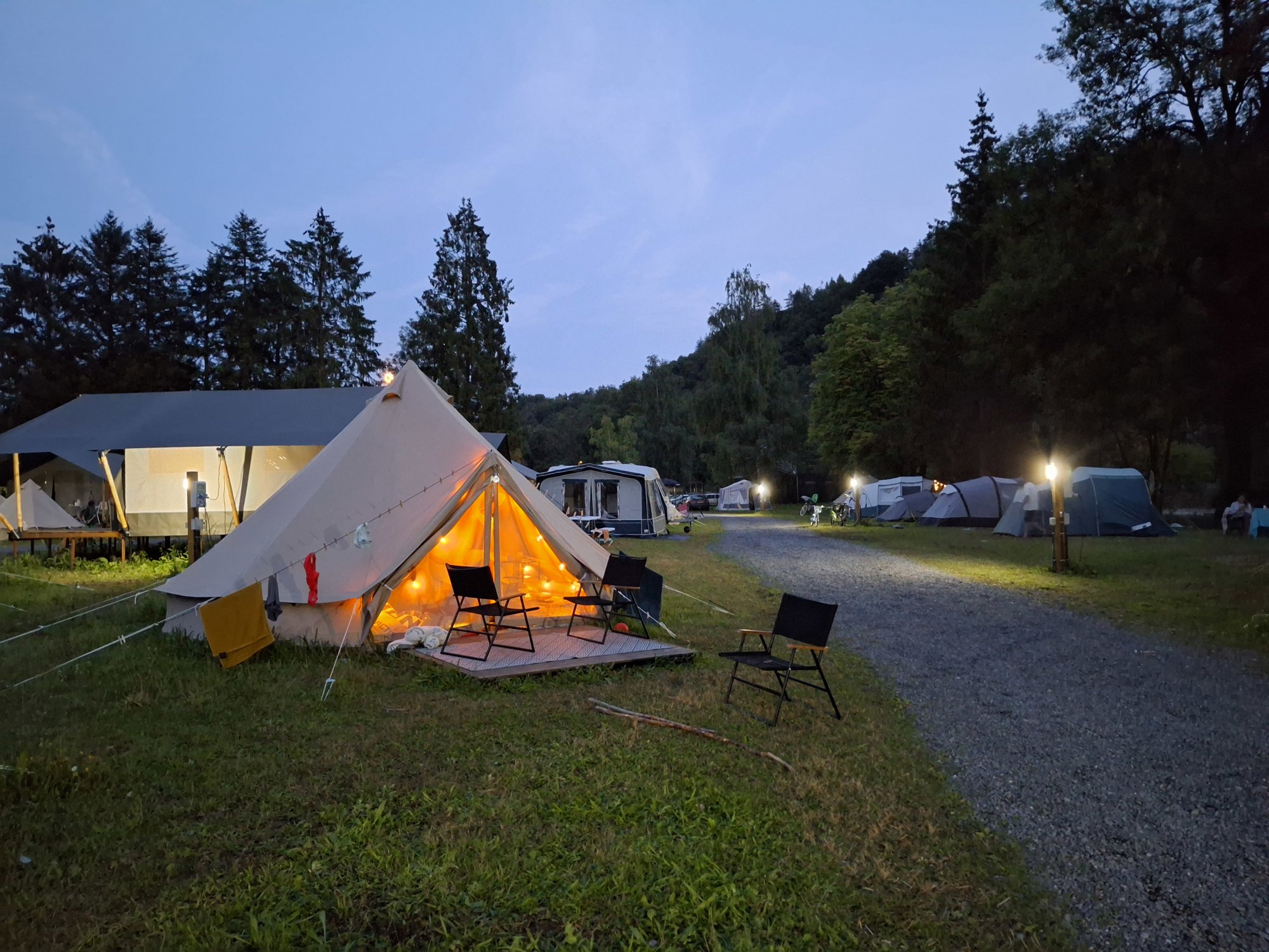 Der Alleinerziehenden-Campingplatz Au Bord de l'Ourthe ist ein gemütlicher Campingplatz im grünen Tal der Ourthe, mitten im Herzen der belgischen Ardennen. Das Gelände erstreckt sich direkt an den Ufern des gleichnamigen Flusses.