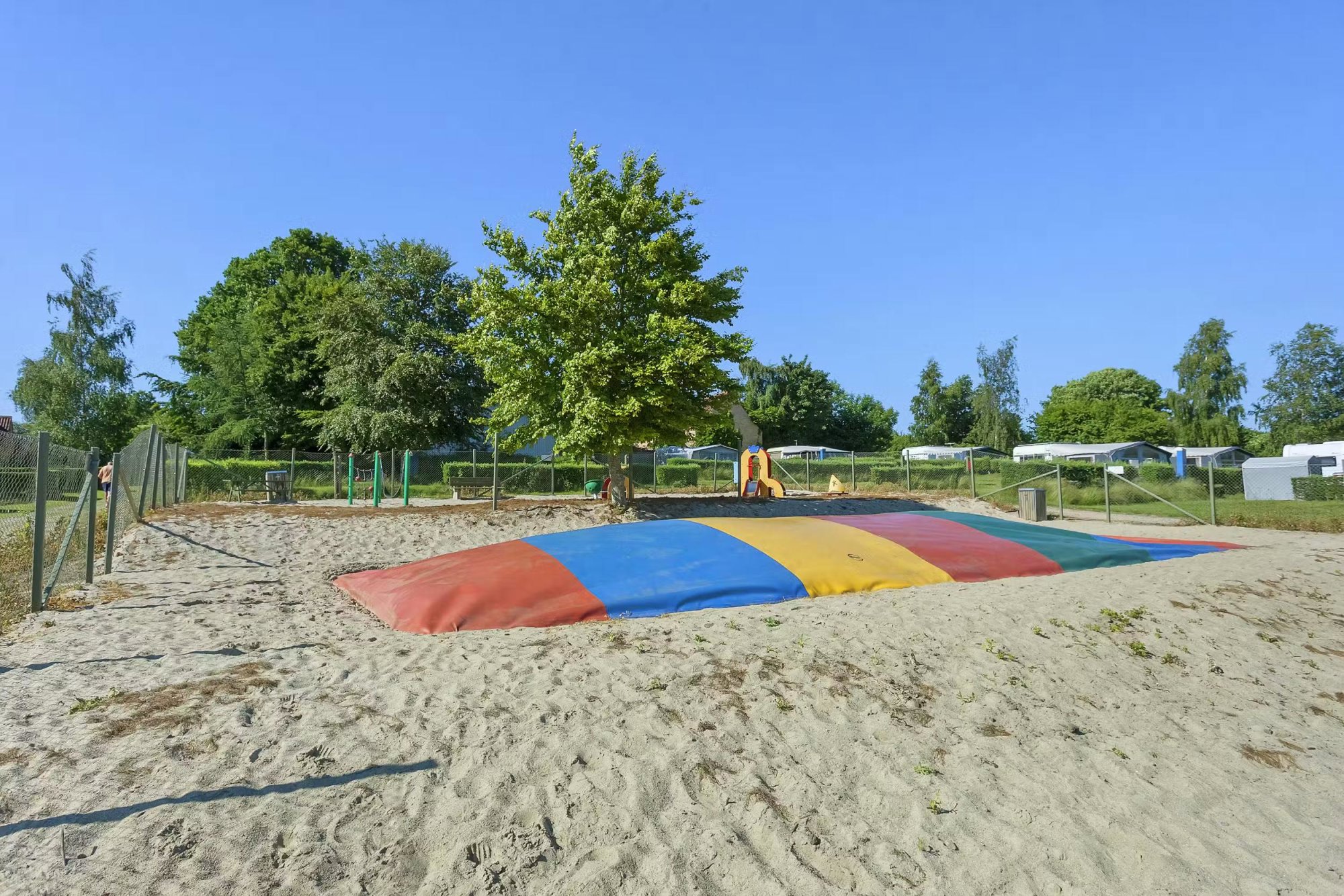 Von Juni bis Ende August ist das Schwimmbad geöffnet. Für Kleinkinder gibt es einen separaten Badebereich, während größere Kinder die Wasserrutsche genießen können. Auf dem Spielplatz finden Kinder schnell neue Freunde. Wie wäre es außerdem mit süßem Stockbrot vom zentralen Grillplatz? Nach einem Tag am Strand oder Pool lädt die Snackbar mit abwechslungsreicher Karte zum Verweilen ein – ob schneller Snack oder frischer Salat. Die modernen Sanitärgebäude sind gut über den Platz verteilt und verfügen über Baby-, Kinder-, barrierefreie und Kombi-Sanitärbereiche. Zudem gibt es zahlreiche Sport- und Spielmöglichkeiten.