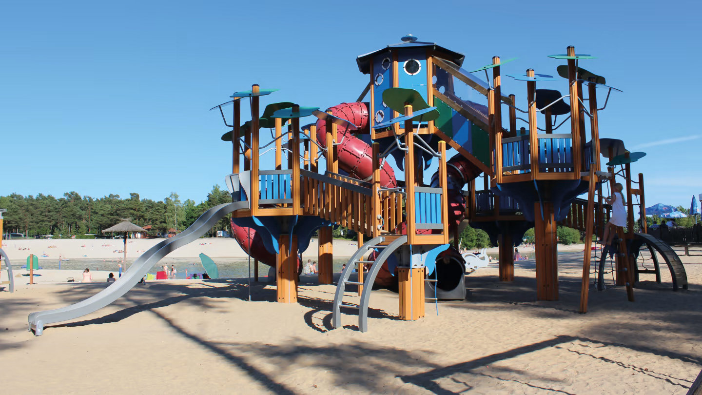 Südsee Camp ist ein besonders schöner, großzügig gestalteter und mehrfach ausgezeichneter Campingplatz mitten in der Lüneburger Heide, gelegen an einem schönen Badesee mit weißem Strand. Warum denn in die Ferne schweifen, wenn der Südsee liegt so nah. Und zwar mitten in der Lüneburger Heide, umgeben von Wäldern und blühenden Wiesen. Ein echtes Urlaubsparadies für Familien!Dank seiner geschützten Lage können Sie in dem herrlichen Naturbadesee bis in den Herbst hinein baden. Für die kleinen Gäste gibt es eine extra Badebucht, ein tolles Piratenschiff und einen großen Spielplatz. Das ist aber noch nicht alles: Das freundliche Kinderanimationsteam sorgt für viel Spaß und gute Laune. Ob Mini-Playback-Show, Mitmachzirkus, Kinderdisco oder Minigolf-Turniere - hier kommt keine Langeweile auf!