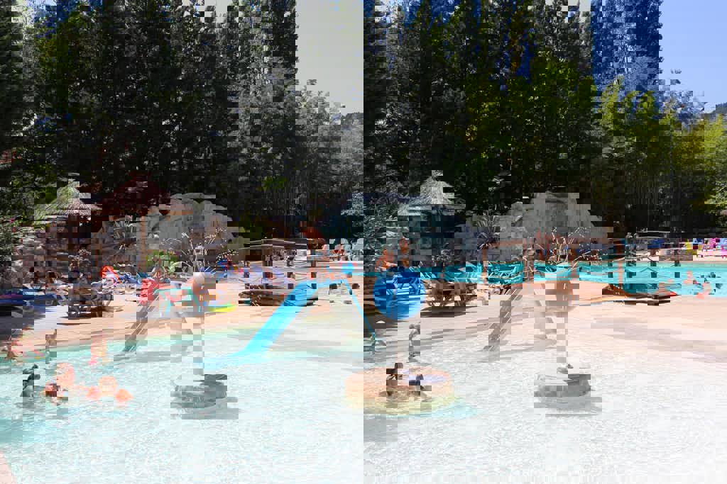 Für zusätzlichen Wasserspaß steht ein geschmackvoll angelegtes Schwimmbad mit 50 Meter langer Wasserrutsche zur Verfügung. Während Kinder die Rutsche hinuntersausen, können Erwachsene in den Whirlpools entspannen. Für die jüngsten Gäste gibt es ein separates Planschbecken. In der Hochsaison werden ein Kids Club und Abendaktivitäten angeboten. Außerdem organisiert der Campingplatz regelmäßig Aktivitäten wie Kajakfahren, Wandern oder Kanutouren.