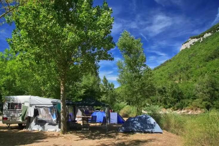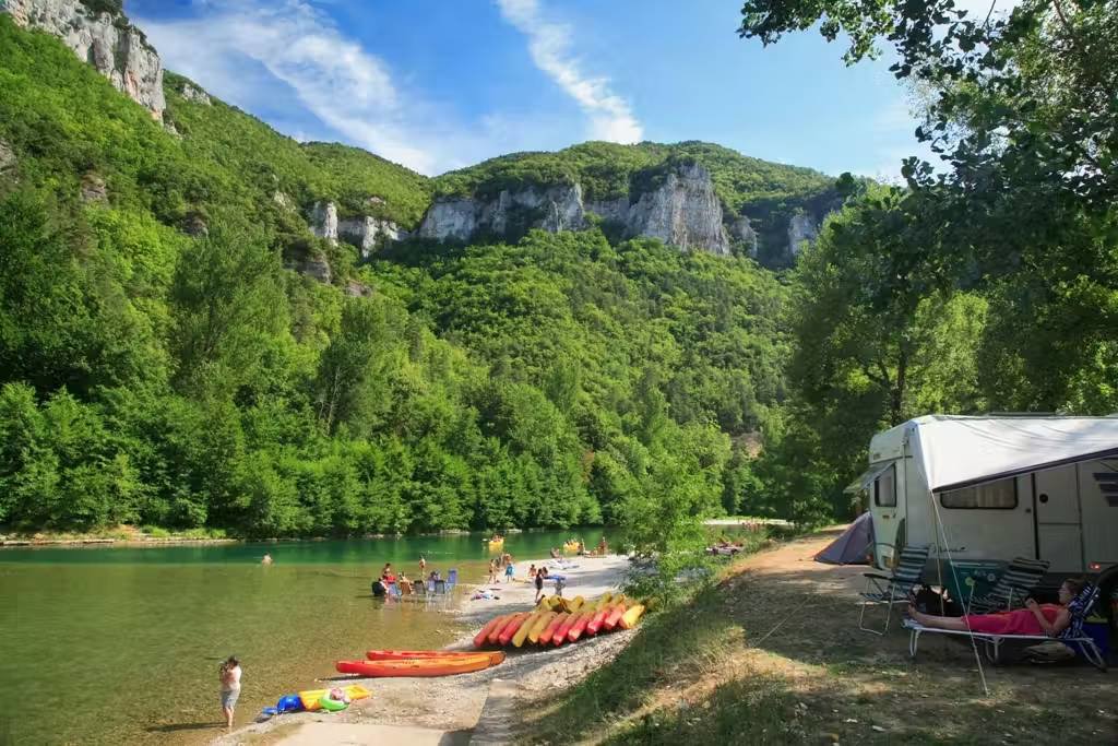 Flower Camping Le Peyrelade ist ein wunderschöner 4-Sterne-Terrassencampingplatz in der Region Okzitanien, direkt am Ufer des Flusses Tarn gelegen. Das langgestreckte Gelände bietet direkten Zugang zu einem privaten Kiesstrand am Fluss – der perfekte Ort, um die spektakuläre Gorges du Tarn zu erkunden. Die Stellplätze sind angenehm schattig und oft durch natürliche Bepflanzung voneinander getrennt. Wer kein eigenes Zelt hat, findet hier komfortable Mobilheime und luxuriös eingerichtete Mietzelte.