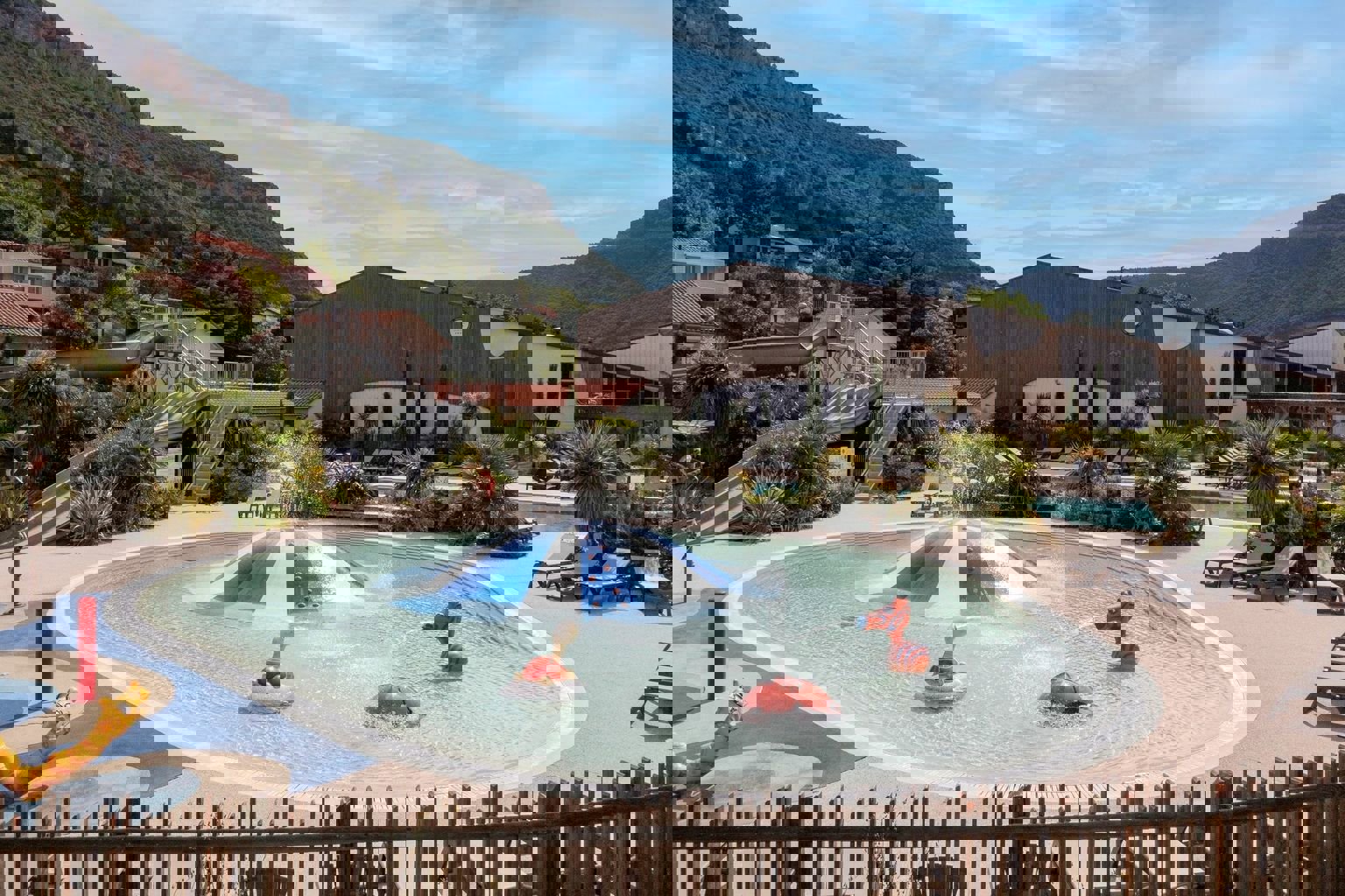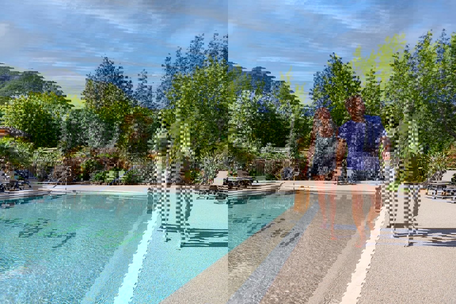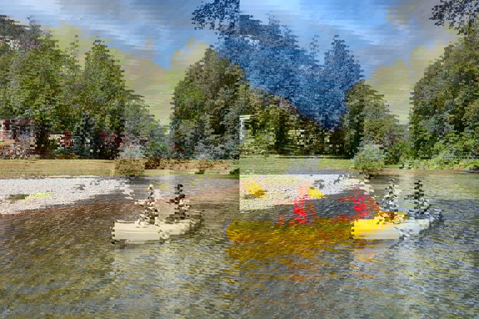 Kurz bevor die Dourbie Millau erreicht, trifft sie auf den Tarn. Dort befindet sich der ansprechende Campingplatz Les Rivages, teils im Grünen und direkt am Wasser. Ein wirklich idyllisches Ferienziel am Fuße zerklüfteter Berge mit der imposanten Brücke über das Tal des Tarn am Horizont. Der kieselige Strand an der seichten Dourbie ist ein toller und sicherer Spielplatz für die Kinder und ein toller Platz zum Sonnenbaden für die Eltern.In einem der beiden Pools können Sie schwimmen oder einen kühlen Drink genießen. Außerdem gibt es für die Kinder einen überdachten Spielplatz mit einem Hüpfkissen. Ein guter Tipp ist das Restaurant, wenn Sie die regionale Küche lieben, aber selbstverständlich auch, wenn Sie eine Pizza bevorzugen. Beim vielseitigen Unterhaltungsprogramm werden sich Jung und Alt nicht langweilen.