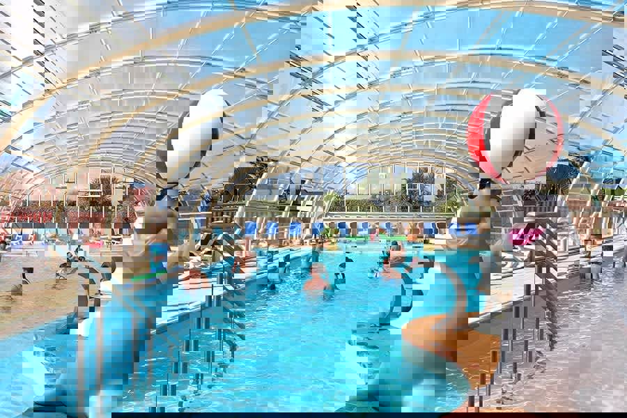 An Einrichtungen mangelt es auf dem Campingplatz nicht. Die wunderschön angelegte Poollandschaft bietet beheizte Innen- und Außenpools. Draußen gibt es dank einer tollen Wasserrutsche und einem flachen Planschbecken jede Menge Wasserspaß. Drinnen wartet ein Wellnessbereich mit Whirlpool und Sauna, um völlig zur Ruhe zu kommen. Sportliche Gäste vergnügen sich bei Fußball, Tischtennis, Boule oder Yoga. Zudem gibt es einen kleinen Tierpark und ein lebhaftes Unterhaltungsprogramm im Amphitheater. Im eigenen Restaurant genießt man frische Meeresfrüchte und traditionelle Holzofenpizza.