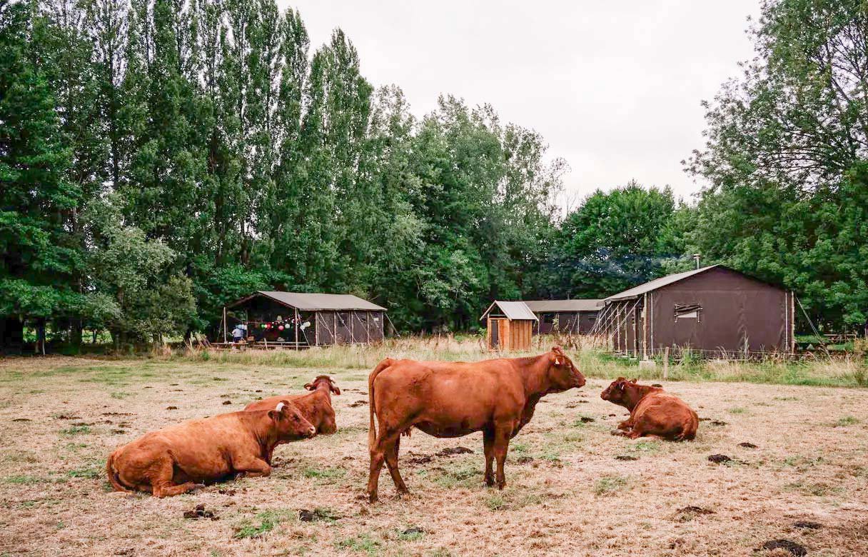 Von Ihrem WiesenBett Zelthaus blicken Sie auf die Weiden, wo die Rinder friedlich grasen