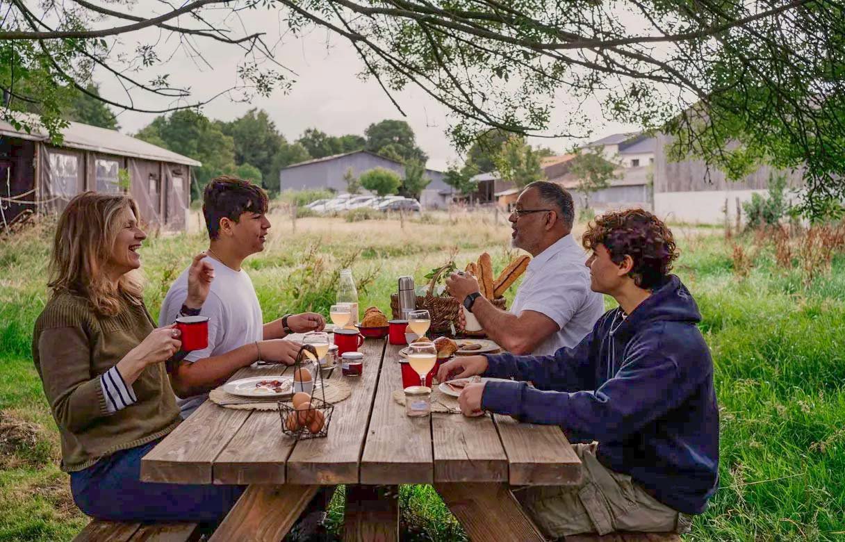 Der Biohof L’Étable des Mauges befindet sich seit 1980 im Familienbesitz und wird von einer an die andere Generation weitergegeben. Derzeit wohnen die Bauern Florent und Charlyne zusammen mit einer Herde von rund 100 Rindern. Die rotbraunen Salers-Rinder gehören zu einer der ältesten Rinderrassen Frankreichs. Auf dem Bauernhof leben auch Ferkel, Kaninchen, Hühner, Ziegen und Schafe. Meist werden die Besucher auch von Hund oder Katze begrüßt.Glamping-Urlaub auf dem Bauernhof L’Étable des Mauges im Anjou