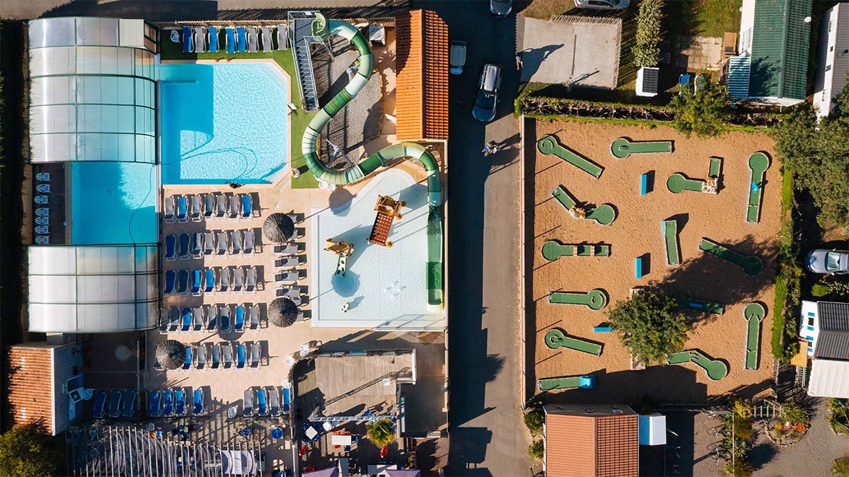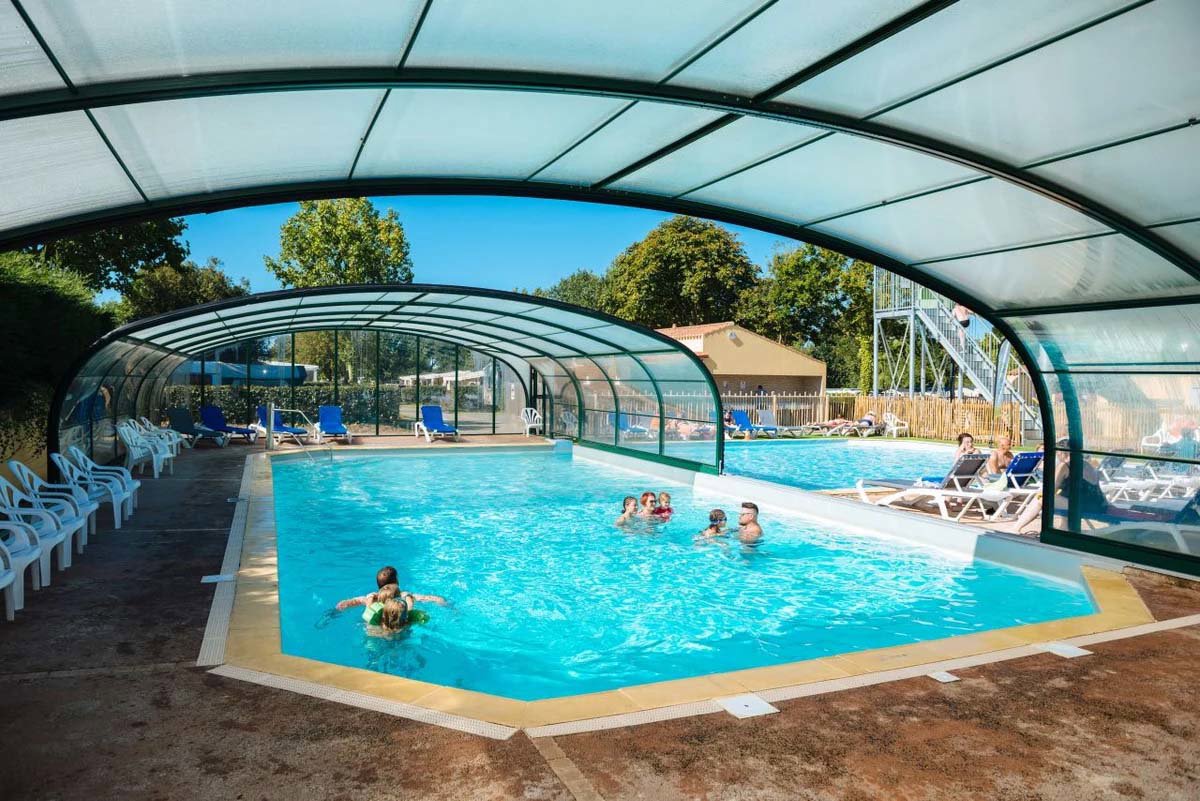 Auf dem Campingplatz ist das Schwimmbecken 28 Grad warm und das Schiebedach sorgt für unbeschwerten Wasserspass. Ihre Kinder werden bei denen
