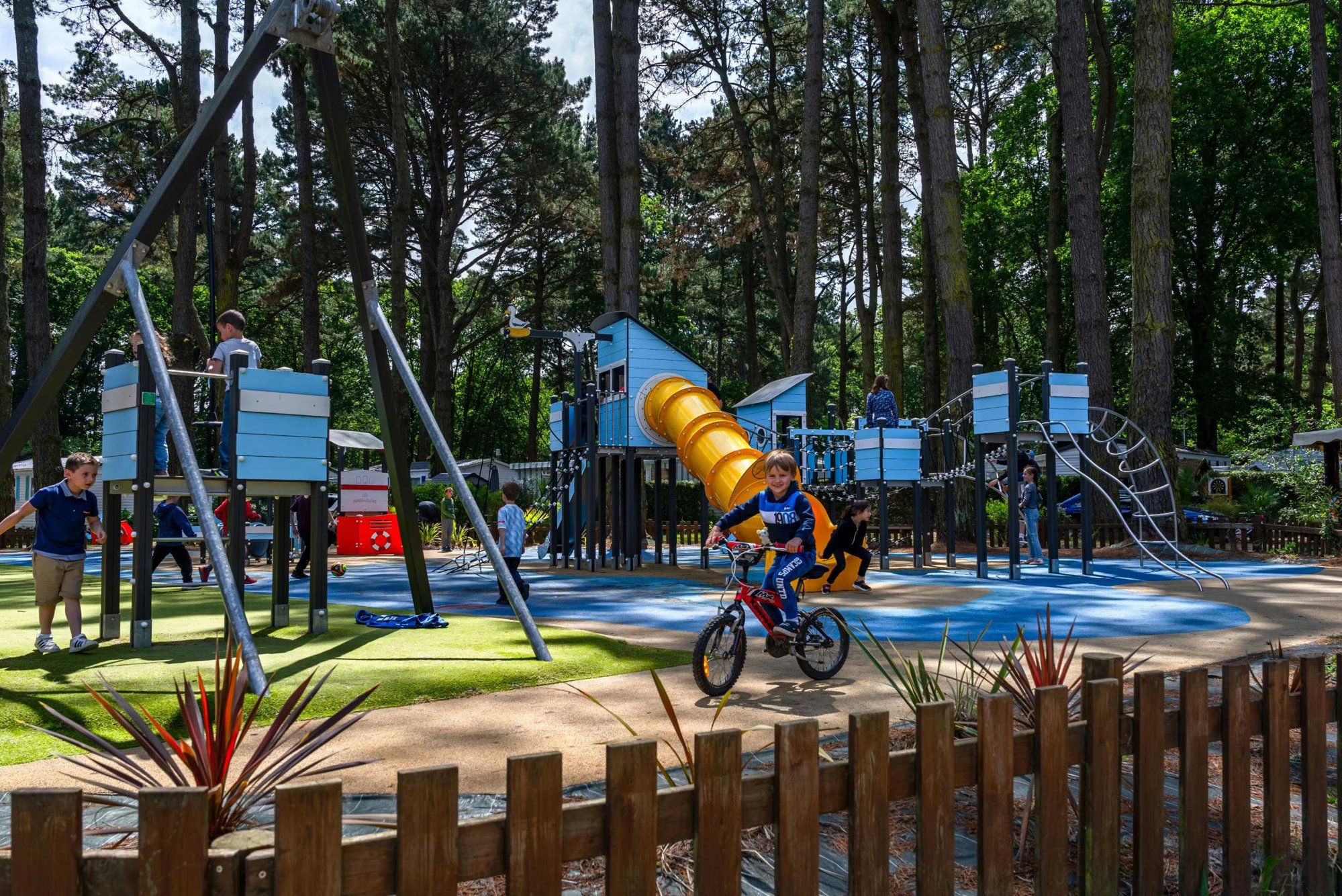Dieser gemütliche Campingplatz liegt in einer grünen Waldumgebung an der Grenze zwischen der Loire-Atlantique und der Südbretagne, nahe dem charmanten Dorf Mesquer. Hier fühlen sich Familien wohl: Das Meer und der Strand von Quimiac sind nur 1,5 Kilometer entfernt, und die Stellplätze liegen angenehm schattig im Wald.