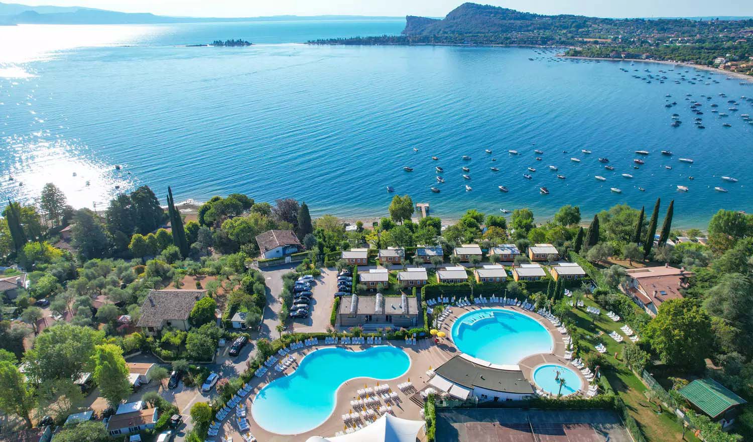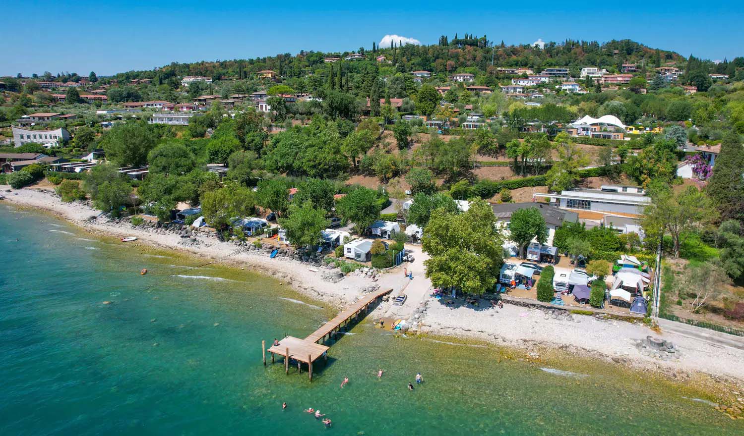 Hier genießen Sie Familienferien zwischen den ruhigen Ferienorten San Felice del Benaco und Manerba, am beliebten Westufer des Gardasees. Baden Sie im Pool mit Kinderbecken, oder im sauberen Seewasser an dem 300 Meter langen Kieselsteinstrand. Ein Holzsteg sorgt dafür, dass Sie direkt zum Schwimmen im See gelangen, ohne über die Steinchen laufen zu müssen. Gäste, die ein eigenes Segel- oder Motorboot mitbringen möchten, können sich vorab eine Bootsboje reservieren.