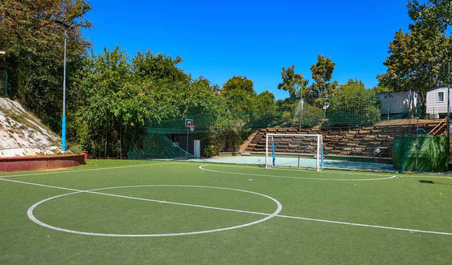 ontzettend kleine plekjes. Kiezelstrand valt erg tegen. Sanitair zeer matig, vaak ijskoude douches met miezerig straaltje. Voetbaltraining voor kinderen erg leuk. Zwembad mooi.
