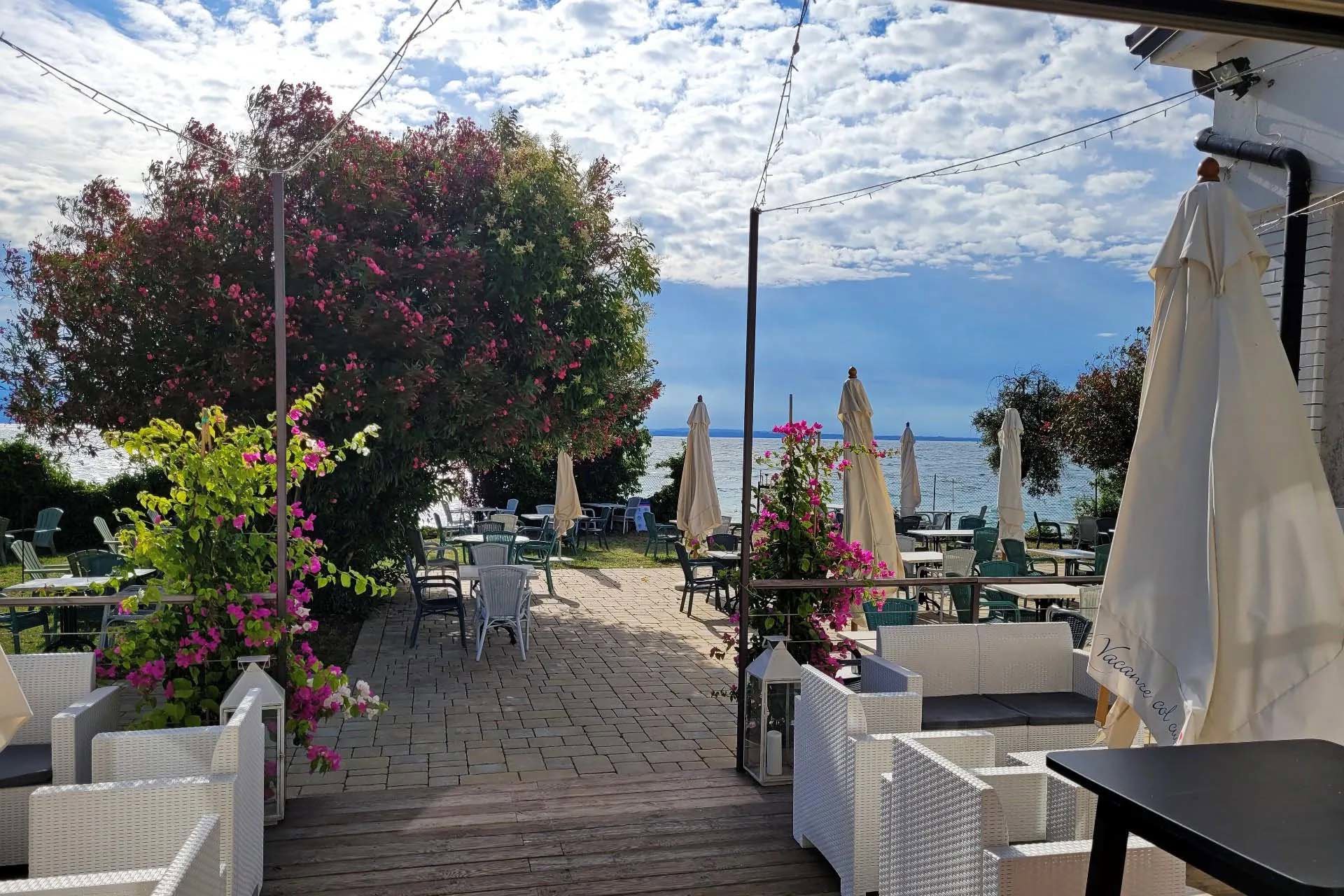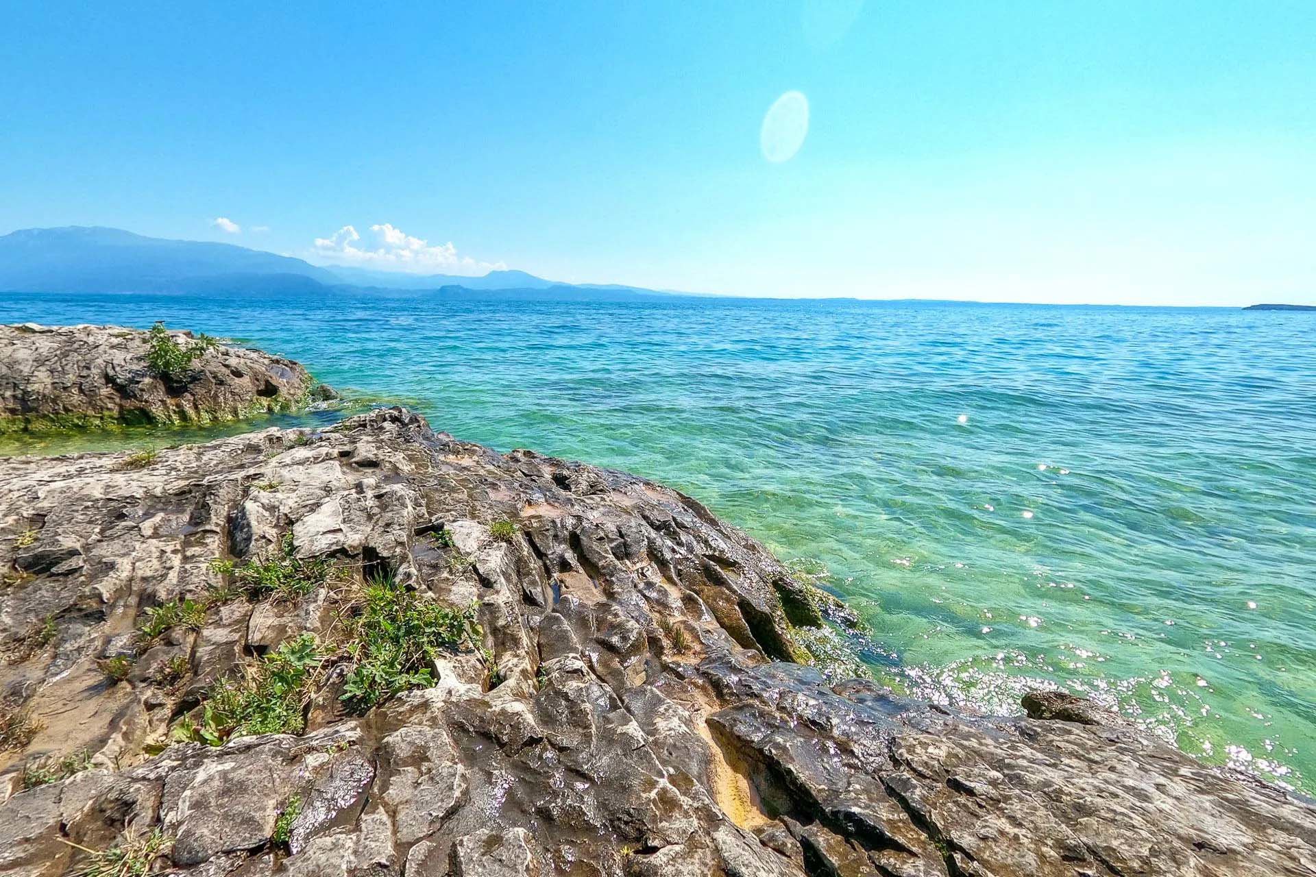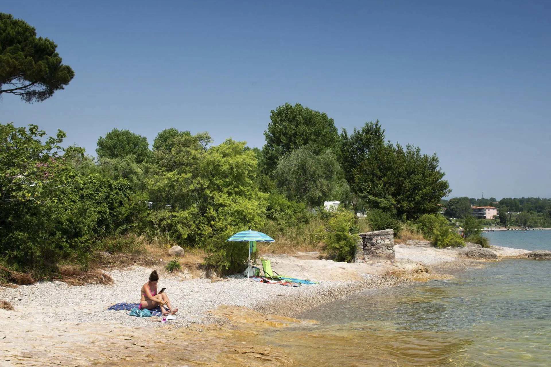 Camping Sivinos Boutique liegt malerisch in einer natürlichen Bucht am Westufer des Gardasees – angenehm abseits vom Verkehr der Hauptstraßen und mit einem Fernblick auf die Halbinsel Sirmione. Abends bieten die beleuchteten Ufer auf der anderen Seeseite eine besonders romantische Kulisse.