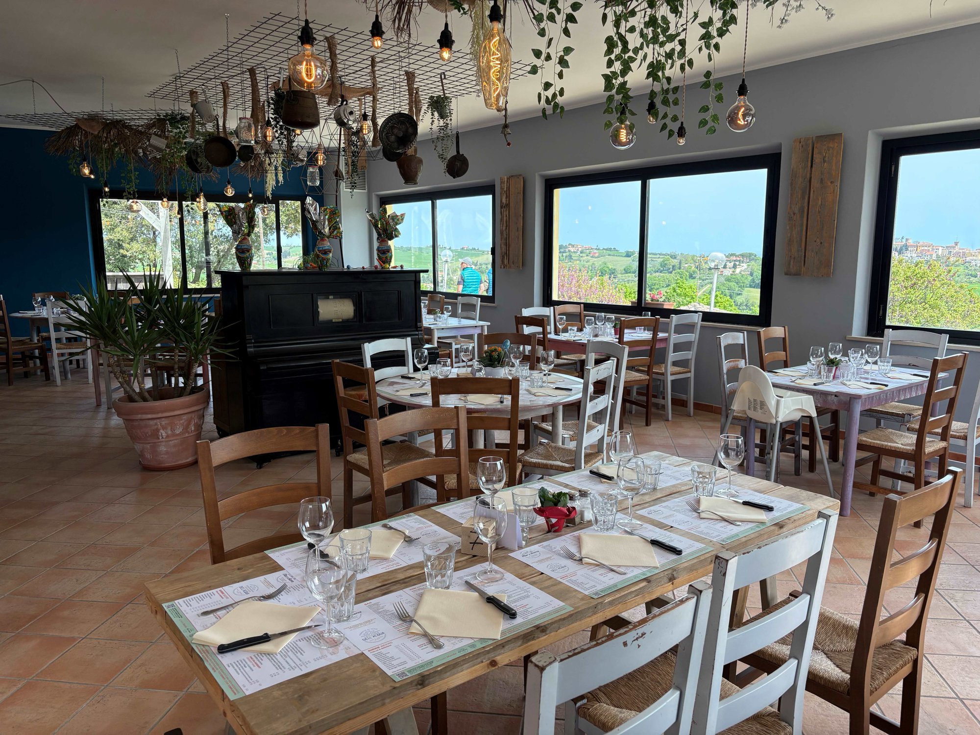 Een 9 voor de locatie en het mooie aanbod accommodaties! Mooie chalets/vakantiewoningen en mooie lodgetenten met geweldig uitzicht op Mondolfo. Zelfs de zee zie je liggen. Restaurant gezellig zowel binnen als buiten. Vriendelijke bediening. Moet je gebruik maken van sanitair dan valt dat tegen. Achterstallig onderhoud! Geweldige week gehad en veel mooie plekjes bezocht, fijne centrale ligging om Le Marche te bezoeken
