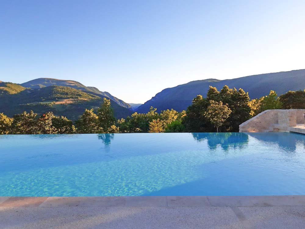 Umbrien liegt abseits der Touristenströme, obwohl es an landschaftlicher Schönheit der Toskana ebenbürtig ist. Hier können Sie über Bergwiesen und durch Zypressenhaine wandern, urige Bauerndörfer und Weingüter besuchen. Oder Sie lassen einfach mal „die Seele baumeln“: Dazu lädt die große Liegewiese am Pool ein. Vielleicht gehen Ihre Kinder in der Zeit in einem der beiden Kinderbecken planschen, oder sie ziehen in den zwei Schwimmerbecken ein paar Bahnen?