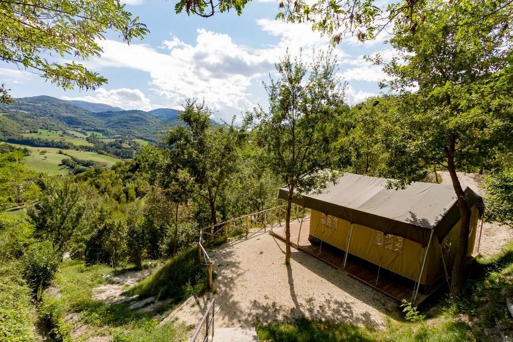 Der Campingplatz Il Collaccio liegt in einer idyllischen, ruhigen Hügellage in Umbrien, dem grünen Herz Italiens. Baden im Pool, gut Essen und Trinken im Restaurant, vielseitige Ausflüge sowie die grandiose Natur – hier erholt sich die ganze Familie. Auf Camping Il Collaccio übernachten Sie in komfortablen Caravans und Luxuszelten. Sie stehen auf hübsch terrassierten Stellplätzen, die Sie über kleine Wege und Treppen erreichen. Von Ihrer Veranda genießen Sie einen herrlichen Ausblick auf die grünen Hügel und Täler der Umgebung.