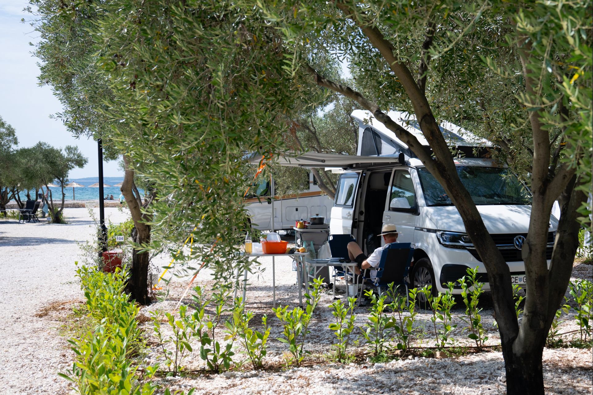 Ja, Camping Resort Šibenik liegt direkt an der Adriaküste in Dalmatien. Vom Platz aus gelangt man unmittelbar zum breiten Kiesstrand mit Liegestühlen und Sonnenschirmen – ideal für entspannte Tage am Meer.