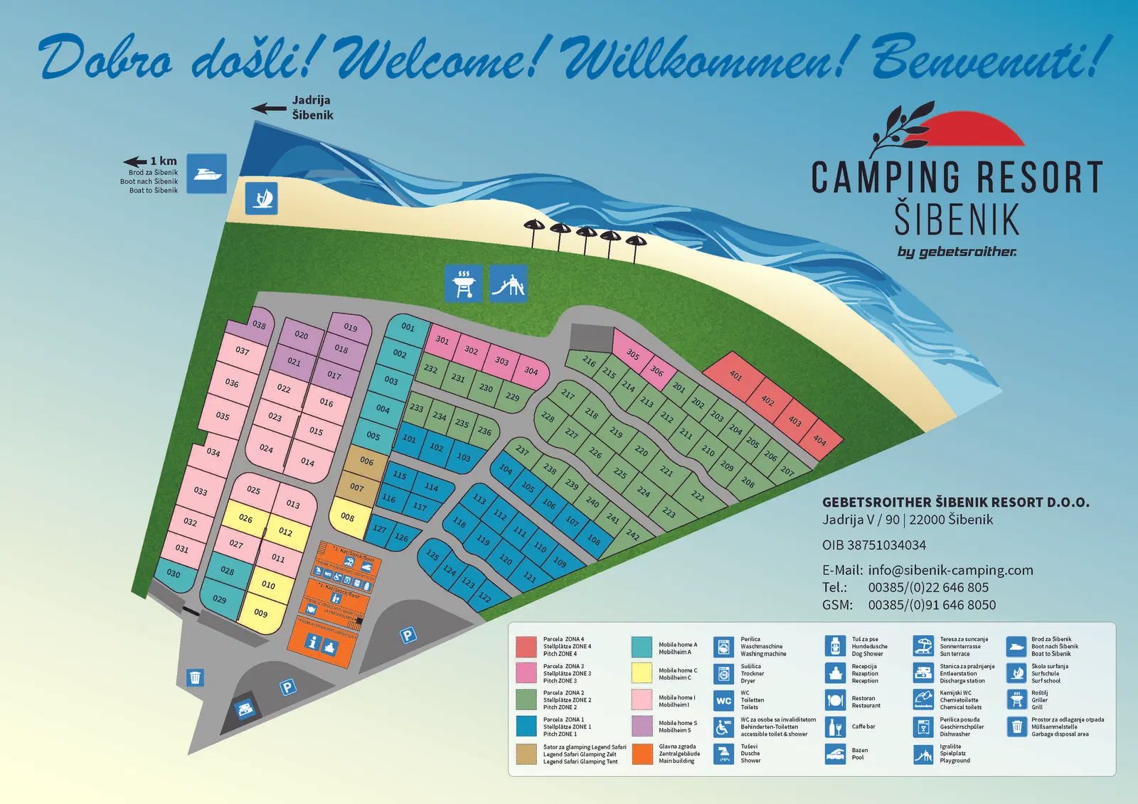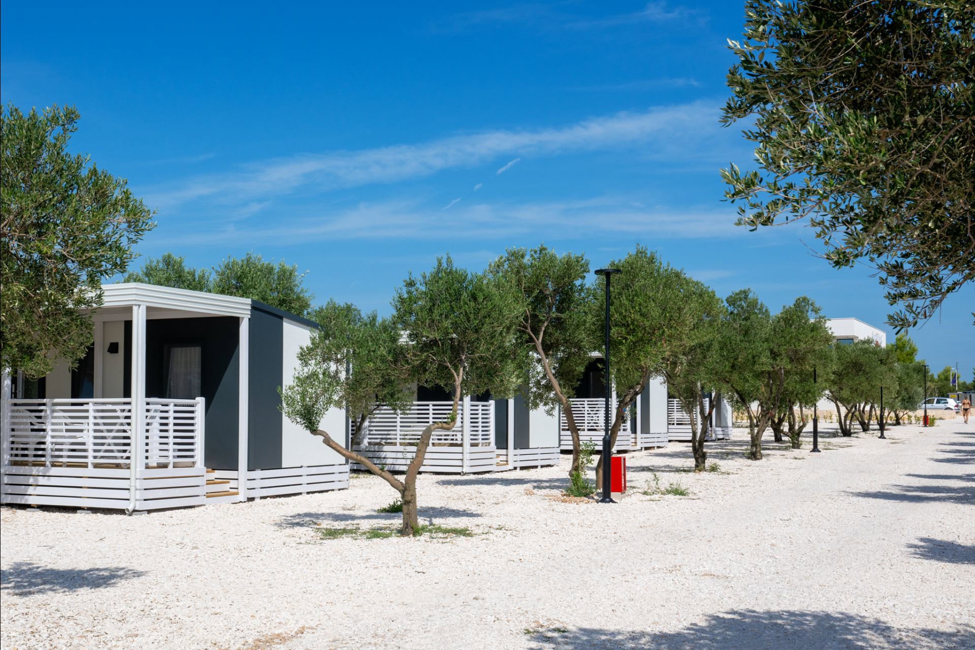 Camping Resort Šibenik ist ein liebevoll angelegter, kleiner Campingplatz in Dalmatien, direkt an der Adriaküste südlich von Vodice. Die Anlage liegt idyllisch zwischen Olivenbäumen in einem großen Olivenhain, unweit des Ortes Jadrija (1 km) und etwa 16 km von Šibenik entfernt. Die Stellplätze sind gepflegt angelegt, und die komfortabel eingerichteten Luxus-Mobilheime mit Terrasse befinden sich auf großzügigen, schönen Parzellen. Das Sanitärgebäude präsentiert sich modern und hochwertig ausgestattet.