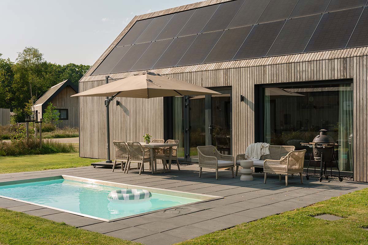 Die Ferienhäuser sind großzügig angelegt und mit allem Komfort ausgestattet. Jedes Schlafzimmer hat ein eigenes Bad, es gibt eine Außenküche und die gesamte Einrichtung ist modern und hochwertig. Auch im Park selbst gibt es viel zu erleben. Spielen Sie gemeinsam eine Partie Padel, toben Sie sich auf dem Multicourt aus oder springen Sie in Ihren privaten Pool. Im Clubhaus finden Sie Informationen über die Umgebung, außerdem werden dort schöne Aktivitäten organisiert. Mit Ihrem eigenen Türcode holen Sie ganz bequem Padelschläger, Boulekugeln oder anderes Spielmaterial ab. Und wie gemütlich ist es, den Tag an der Feuerstelle ausklingen zu lassen und dabei Marshmallows zu rösten?