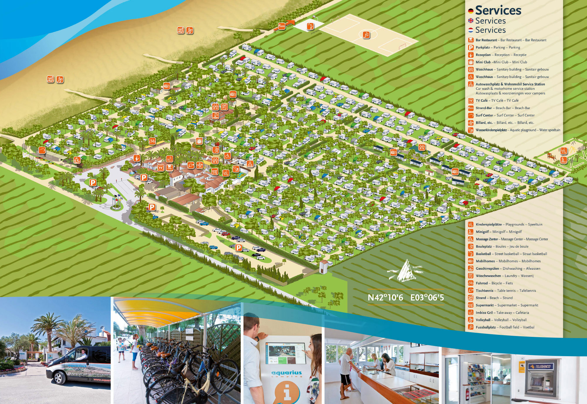 Das Camping verfügt über gute Einrichtungen und gepflegte, flache Stellplätze. Diese befinden sich teils direkt am Meer und die mediterrane Bepflanzung sorgt für Schatten. Für die Kinder gibt es ein tolles Animationsprogramm und es werden mit dem Fahrrad oder dem Geländewagen diverse Ausflüge ins katalanische Hinterland organisiert.