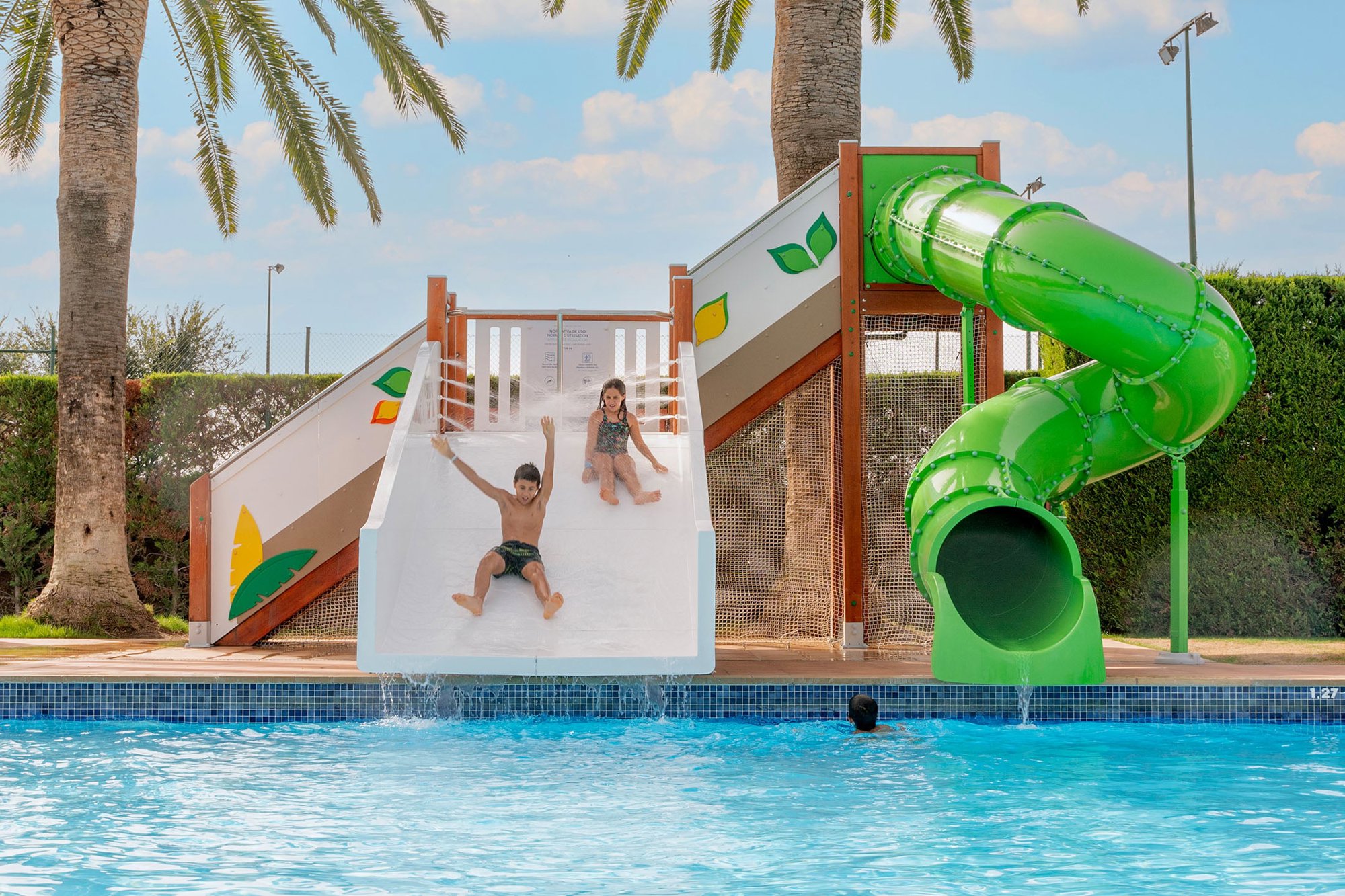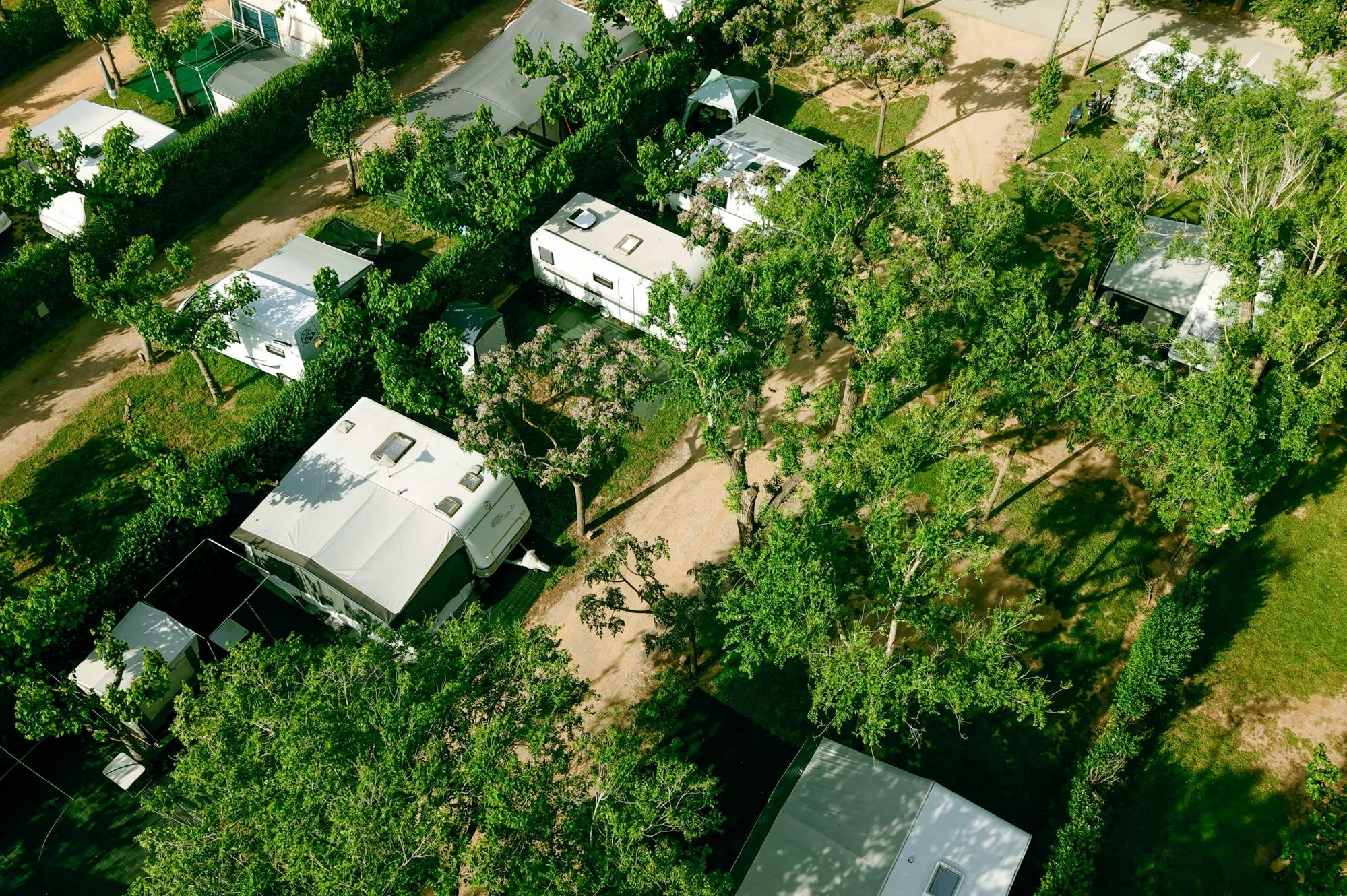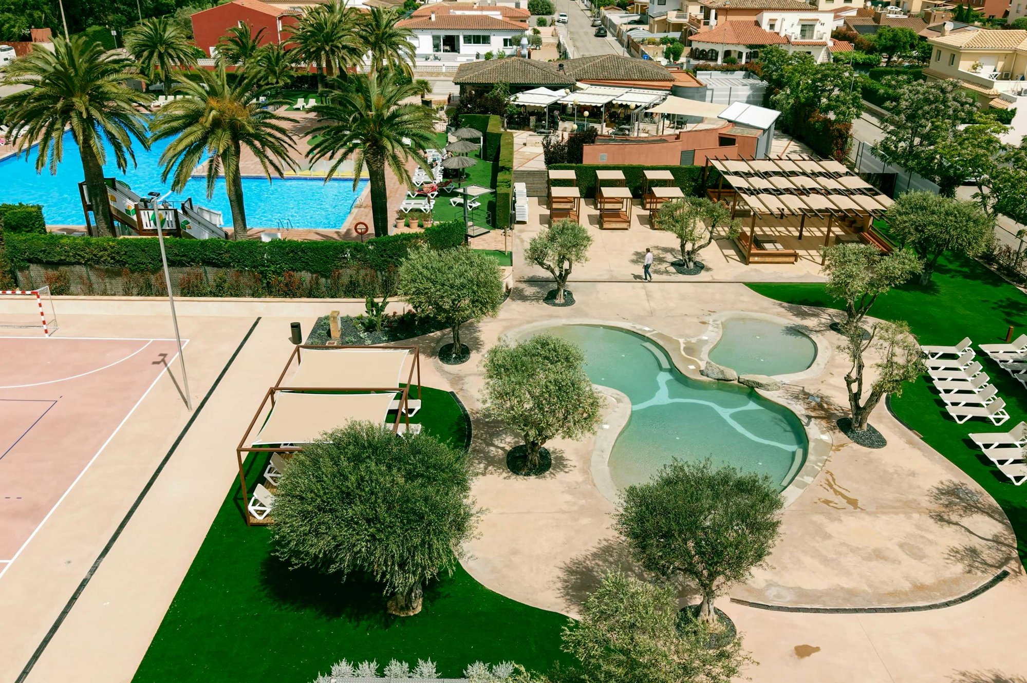 Auf dem blumigen, grünen Gelände befindet sich gleich rechts das Rezeptionsgebäude. Der Eingang setzt den Ton für den Rest des Platzes: alles ist ordentlich und gut gepflegt. Die Stellplätze sind größtenteils schattig. Gegenüber finden Sie ein schönes, geschmackvoll angelegtes Schwimmbad mit Liegen. Außerdem gibt es mehrere Sportfelder, auf denen Sie mit Freunden aktiv sein können. Der Supermarkt liegt um die Ecke – sehr praktisch. Auf dem Campingplatz gibt es einen Brötchenservice. Und natürlich darf auch ein Strandbesuch nicht fehlen: Der Weg zum Strand führt über den Hafenort Empuriabrava (das „Venedig Spaniens“).