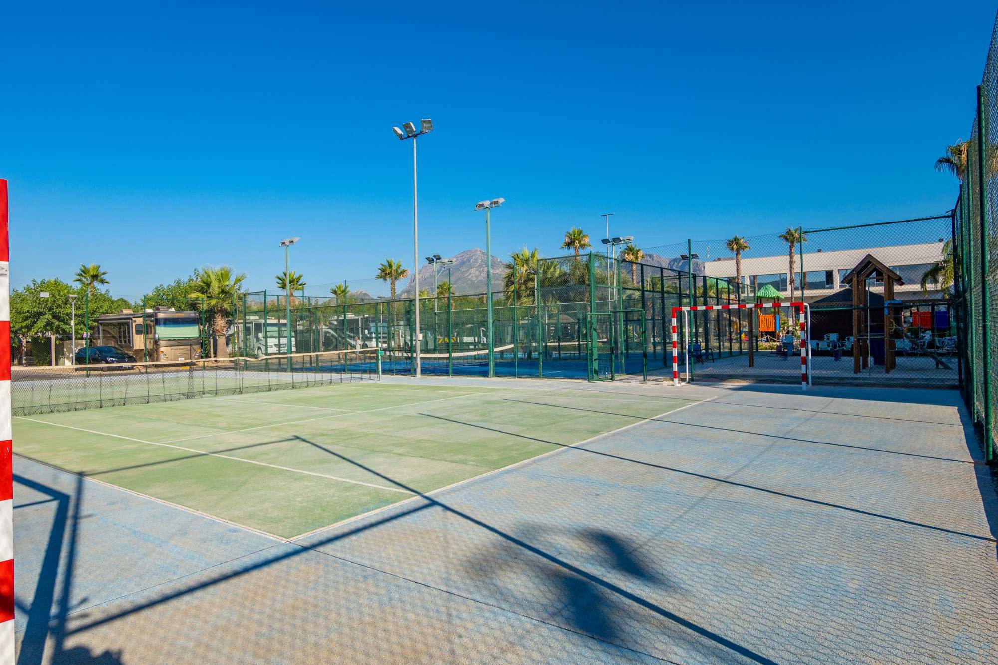 Aber natürlich können Sie auch ganz entspannt auf Ihrem großzügig angelegten 5-Sterne-Campingplatz bleiben und das spektakuläre Schwimmbad mit Jacuzzi-Spa und Wellness-Center genießen. Vergessen Sie in den Nebeln des Dampfbads den Alltag. Oder lassen Sie sich doch mal von Ihren Kindern beim Boules-Spielen besiegen – was für ein Jubel! Die Kinder freuen sich auf den weitläufigen Spielplatz und Sportfreunde spielen zusammen Fußball, Padel-Tennis oder Basketball. Wenn es sehr warm ist, gibt es einen sonnengeschützten Innenbereich mit Tischkicker, Airhockeytisch und weiteren Spielen. Der gepflegte Strand ganz in der Nähe des Platzes lädt Kinder und Eltern ein zum Sonnenbaden im feinen Sand und zum Plantschen im kristallklaren Meer. Gönnen Sie sich mediterrane, regionale Köstlichkeiten im Restaurant von Camping Almafra. Auf der Terrasse treten auch manchmal Live-Musiker auf.